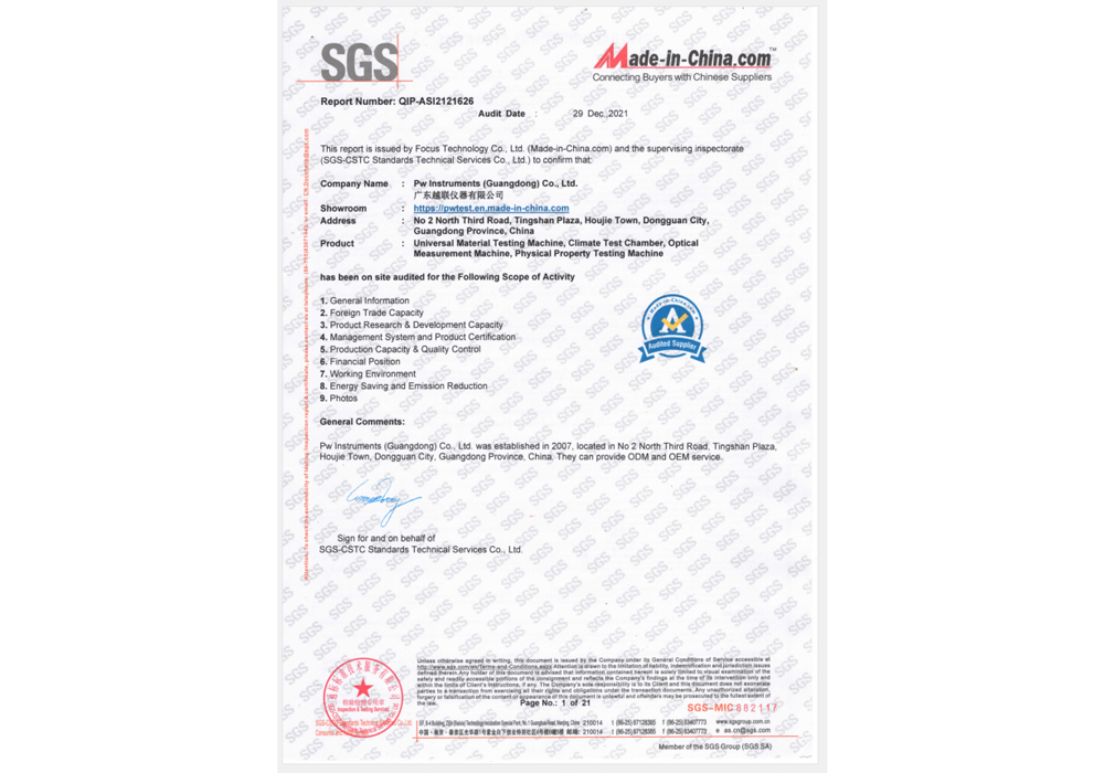 SGS工廠認(rèn)證證書