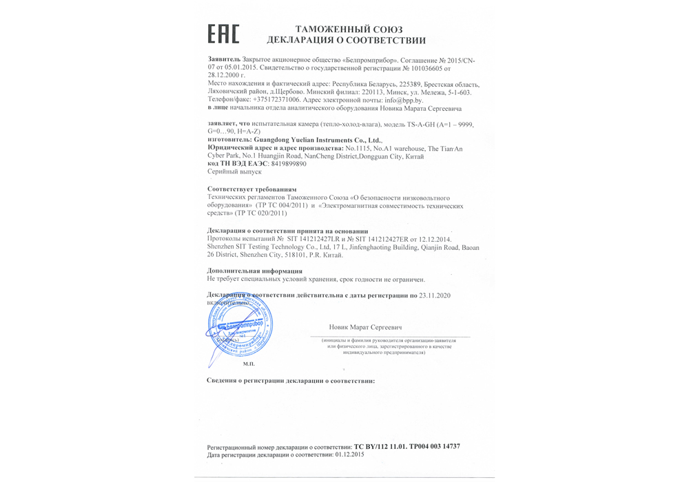 俄羅斯試驗(yàn)箱EAC認(rèn)證證書